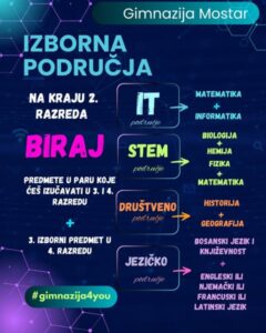 Biraj smjer na kraju 2. razreda – set predmeta koji želiš izučavati u 3. i 4. razredu, i to: